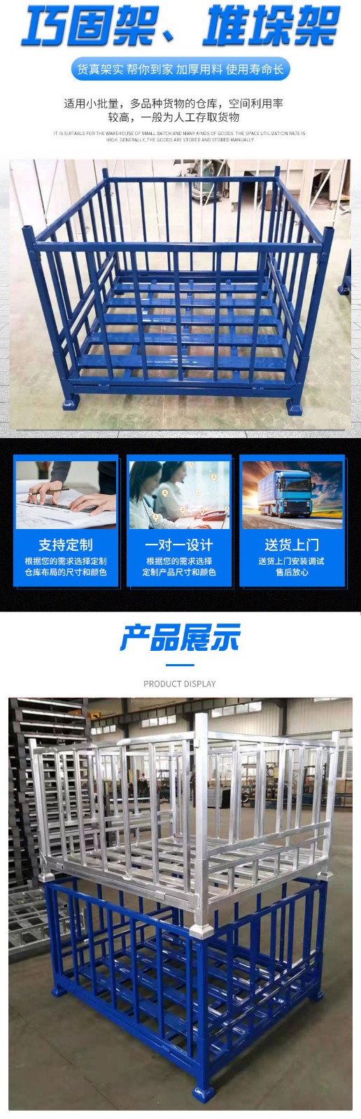 堆垛架,可相互堆3到4層,形成立體存儲模式,無需借助貨架、倉儲籠和托盤等設(shè)備,適合用在租賃倉庫、低矮的老式倉庫或車間暫存區(qū)等不適合投資貨架的區(qū)域。