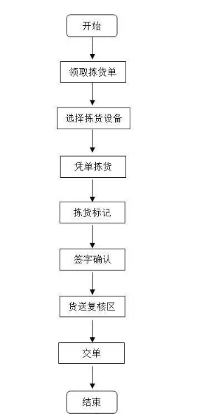 優(yōu)點:這種方法更準確、快捷,減少了揀貨員的勞動強度,作業(yè)流程如下圖所示。