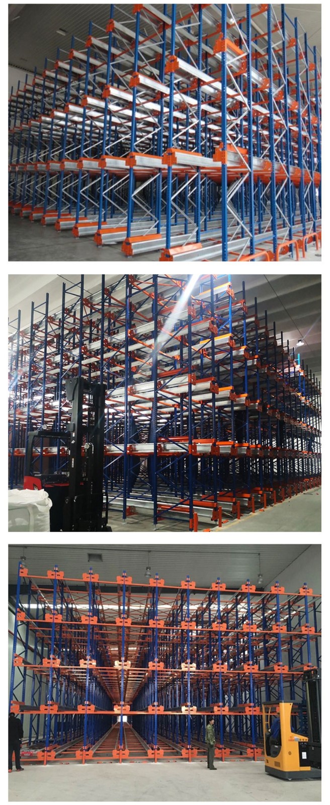 存貨:由叉車將貨物放在貨架巷道導軌的前端,